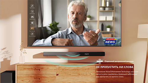 Центральный динамик. Технология Voice Enhancement Technology улучшает четкость речи и диалогов и буквально не позволит вам пропустить ни единого слова.