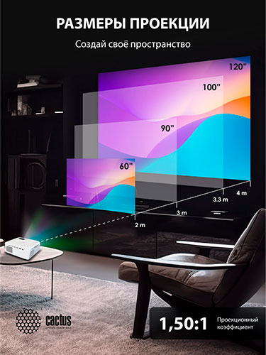 Проектор Cactus CS-PRM.07WT.Full HD LCD В наличии. |