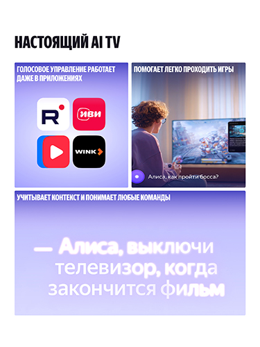 ⁵ Yandex Picture Quality. Фирменная настройка изображение от инженеров Яндекса. Использование функции AI Picture Quality может быть недоступно для определенного контента.