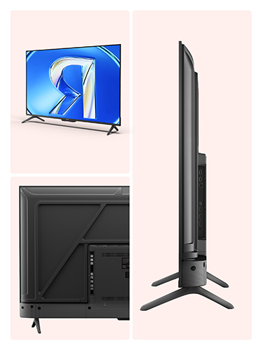 В комплекте есть две металлические ножки и винты к ним, пульт и две батарейки ААА, кабель питания и краткое руководство пользователя. Телевизор можно установить на тумбе или повесить на стену. Для моделей с диагональю 43”, 50” и 55” подойдёт стандарт VESA 300x300, для модели 65” — VESA 400x300.