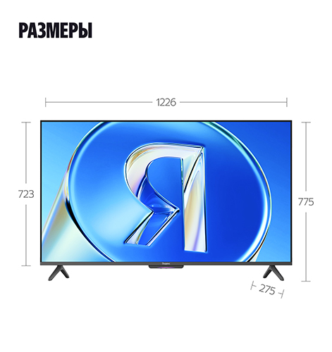 Яндекс ТВ Станция Бейсик QLED доступна в четырёх диагоналях — 43, 50, 55, 65 дюймов.