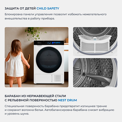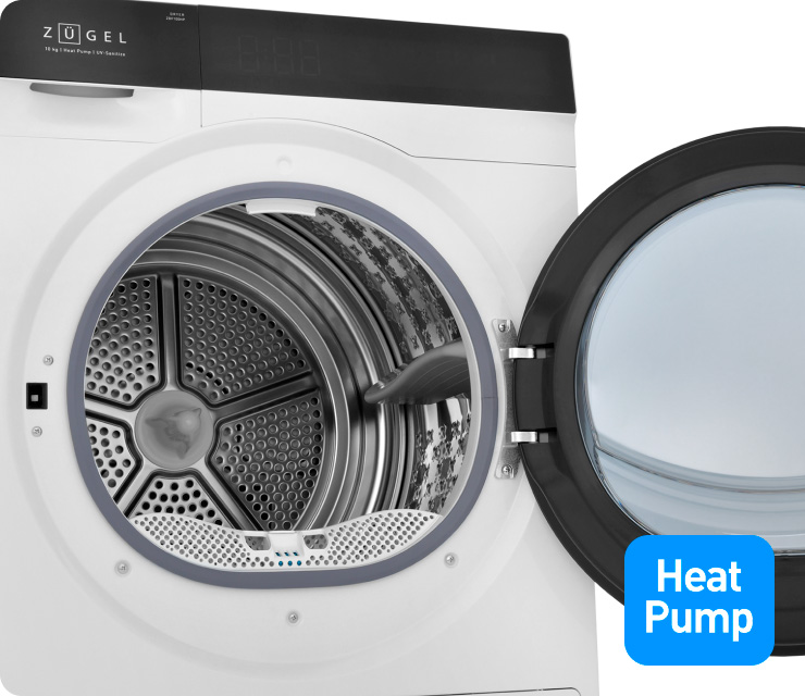 Тепловой насос Heat Pump – инновационная технология, которая обеспечивает эффективную и бережную сушку на невысоких температурах, исключает усадку и повреждение белья, подходит для деликатных тканей, значительно экономит электроэнергию