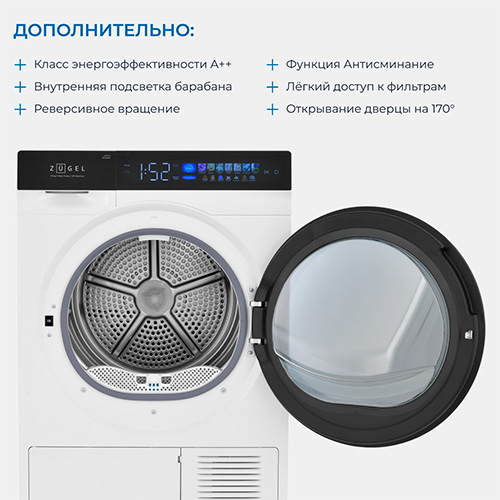 Открывание дверцы на 170° облегчает загрузку и извлечение белья из барабана