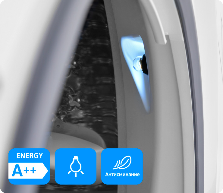 Функция Антисминание позволяет избежать образования сильных складок на белье, что значительно облегчает процесс глажки