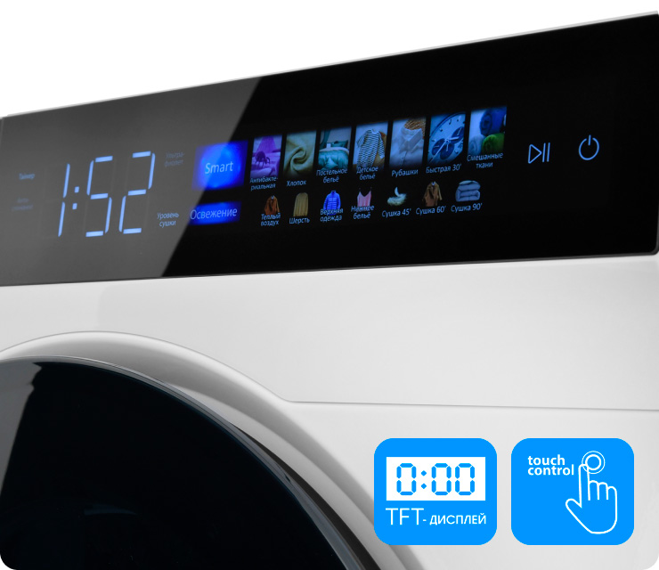 Функция Ультрафиолет - обработка уф-излучением, которое убивает бактерии, вирусы и аллергены, дезинфицирует белье, предотвращает появление грибков, плесени и неприятных запахов в барабане