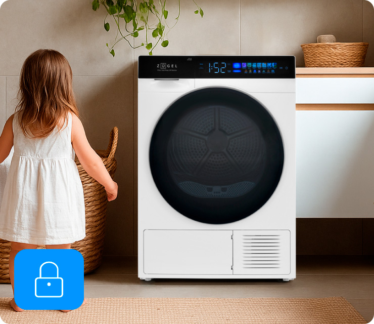 Внутренняя подсветка и прозрачная дверца позволяют легко контролировать процесс сушки белья