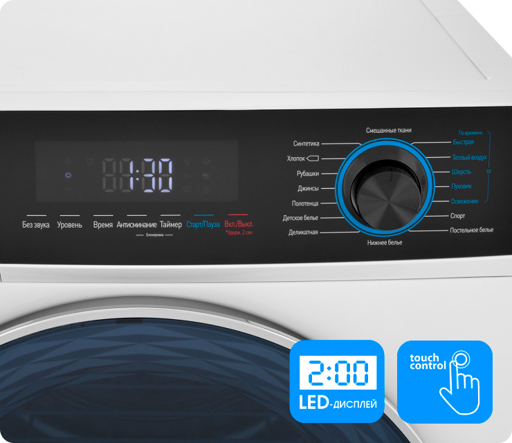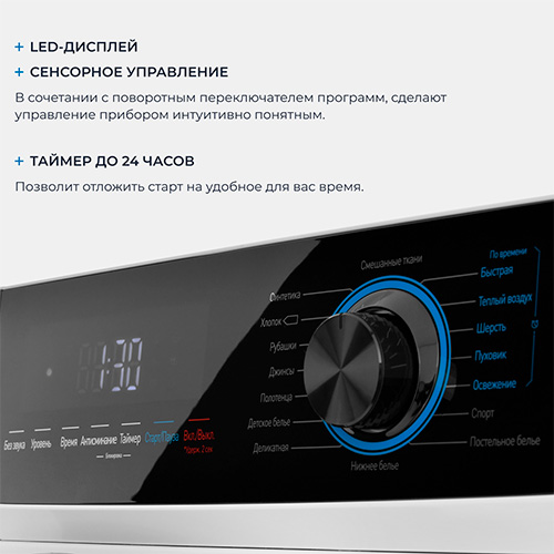 Сушка по остаточной влажности: специальный датчик контролирует влажность белья и гарантирует идеальный результат