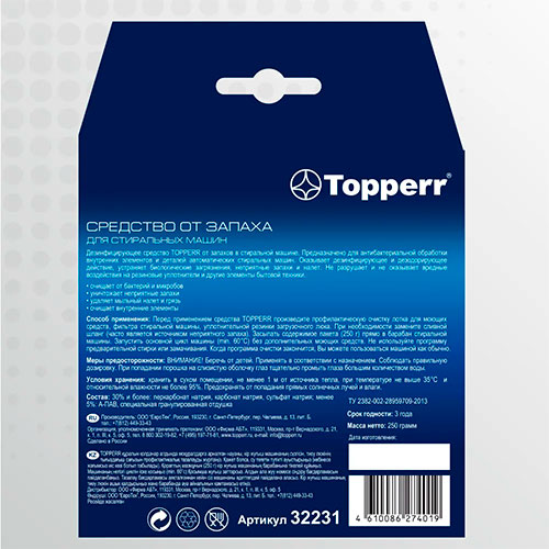 Средство от запахов в стиральных машинах Topperr 250 г (32231) В наличии |