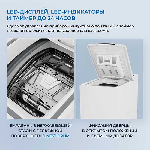 5,00 | | Преимущества: | Есть и крутилка и сенсор, видно время стирки и ход процесса. Влезает много всего, можно стирать все в один заход. Есть быстрый режим. Не требует контроля, простое подключение. Счета в норме, очень много не наматывает. Тихая, барабан сбалансирован и дверца хорошая, не скрипит. | | Недостатки: | Не обнаружились. | | Комментарий: | Отлично для большой семьи, практичнее машинки с горизонтальной загрузкой. Смотрится немного не так круто, но я уже привыкла. |