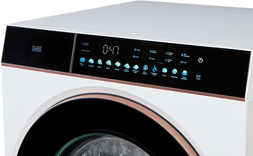 Сенсорная панель, оснащённая цветным дисплеем, облегчает управление функциями бытовой техники и наглядно представляет всю необходимую информацию о процессе стирки.